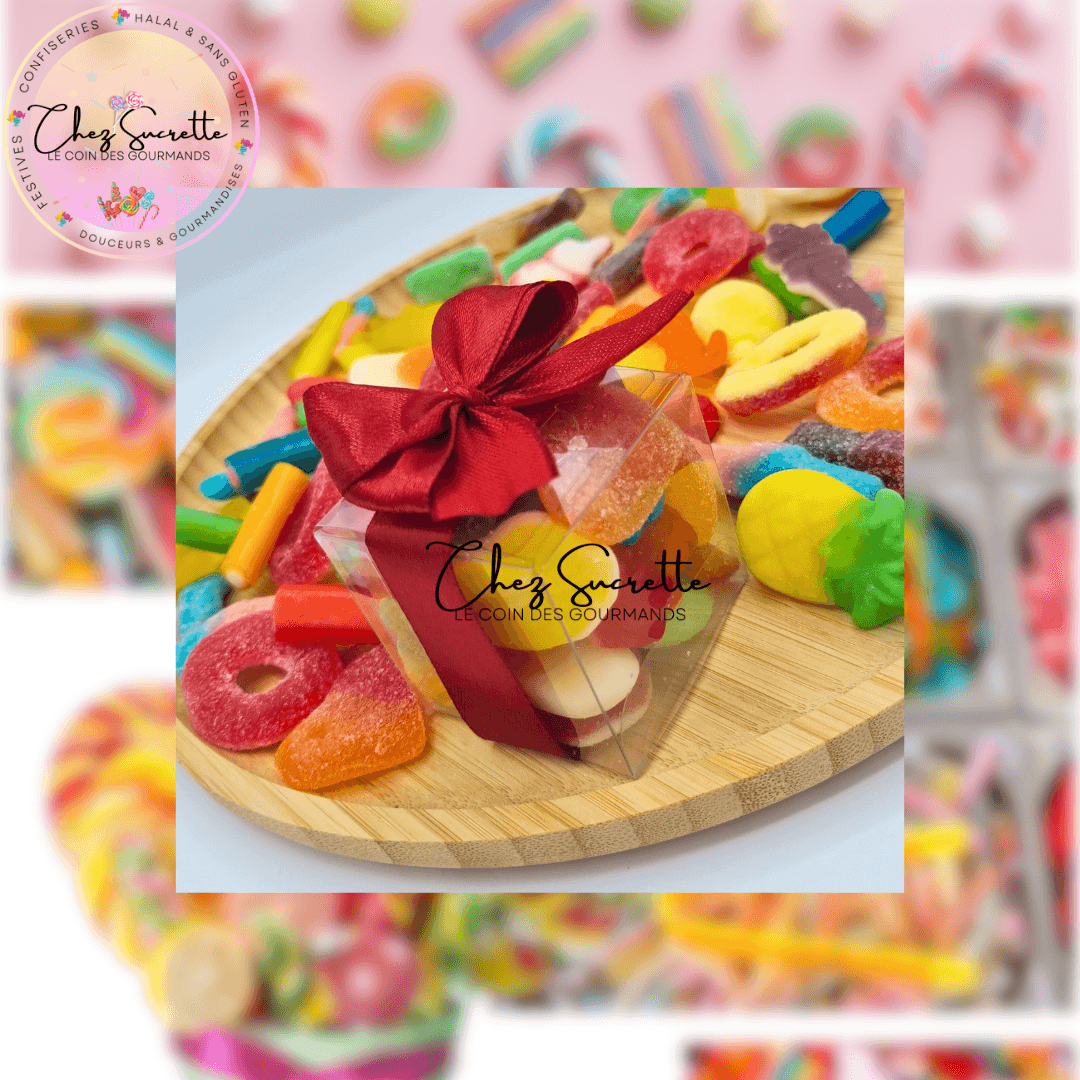 Redécouvrez les douceurs des événements avec mes ballotins de bonbons ! Offrez à vos invités des présents gourmands, confectionnés avec soin et adaptés à tous les régimes alimentaires. Je vous propose une large gamme de bonbons sans gluten et halal, présentés dans des ballotins élégants et personnalisables. Des nœuds raffinés et une multitude de modèles s'adaptent à tous les thèmes et toutes les couleurs de votre événement.